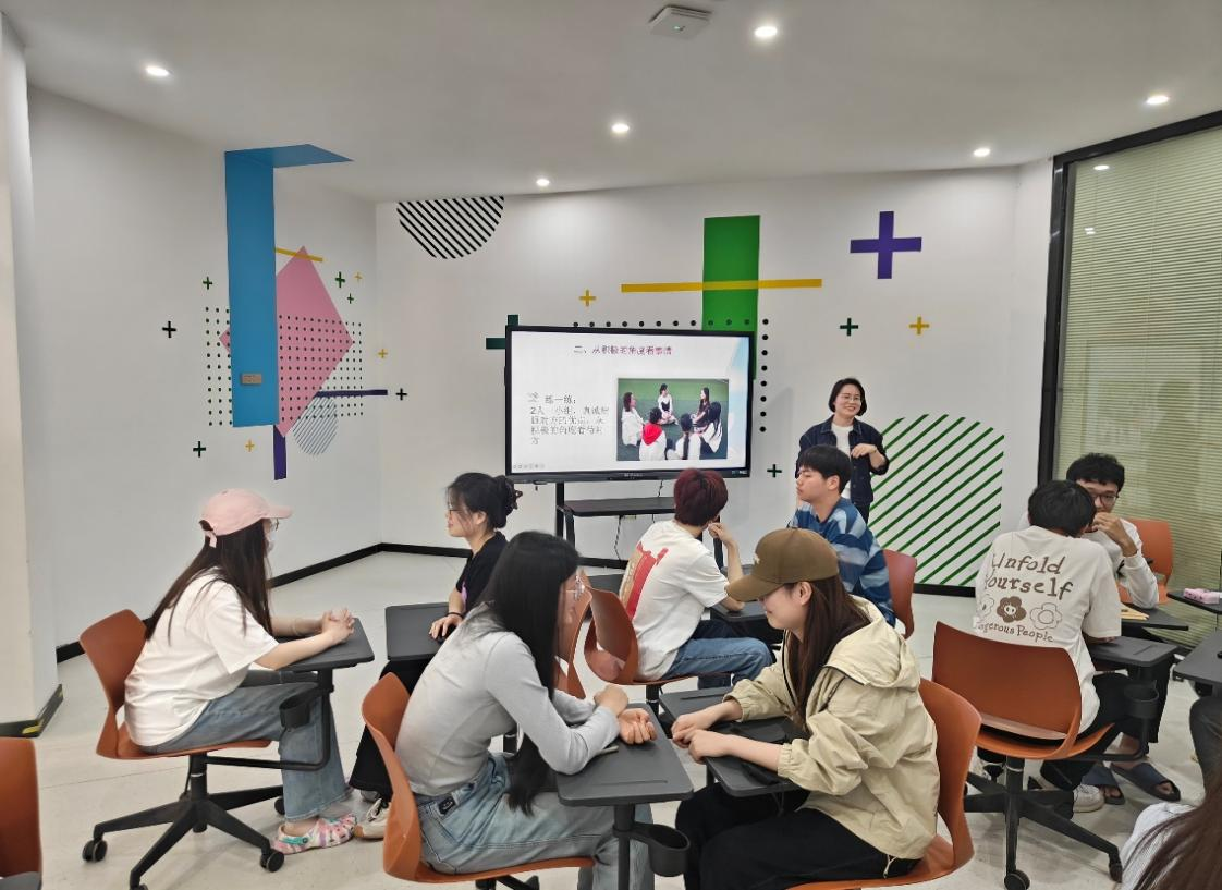 小组讨论环节,姜琳结合新生常见的适应焦虑、社交困惑等问题,引导学生分享情绪调节妙招。从“运动宣泄法” 到 “积极心理暗示”,同学们畅所欲言。姜琳通过案例解析与视频演示,系统总结了认知调节、注意力转移等科学方法,并带领小组进行情境模拟练习。