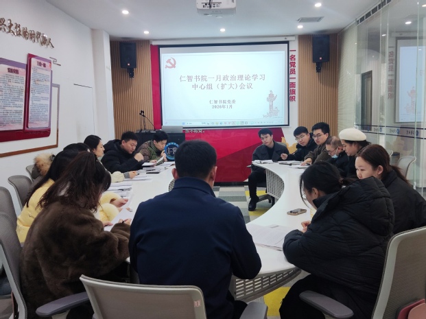 1月29日上午,仁智书院党委开展理论学习中心组(扩大)一月份政治理论学习。会议由仁智书院党委书记刘小磊主持,党委理论学习中心组成员及教师党员参加。本次学习采用“书记领学+集中研讨”的方式进行。