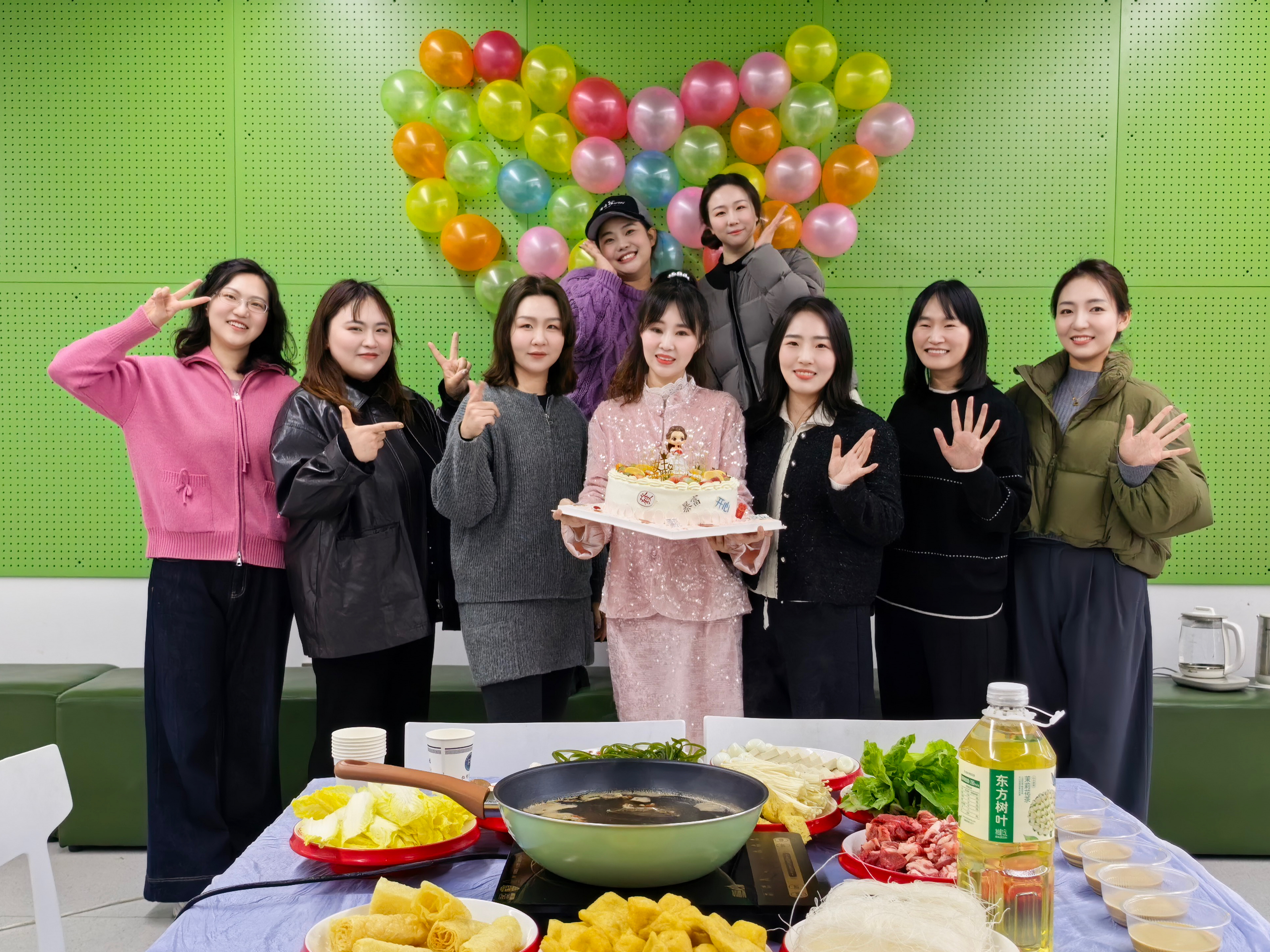 活动伊始,书院男教师化身“暖心主厨”与“全能管家”,从食材采买、精心摆盘到餐具分发,全程细致筹备、贴心服务。热气腾腾的火锅宴温馨开席,香甜精致的节日蛋糕点缀其间,烟火升腾里藏着最真挚的敬意,暖意融融中尽显书院大家庭的温情。